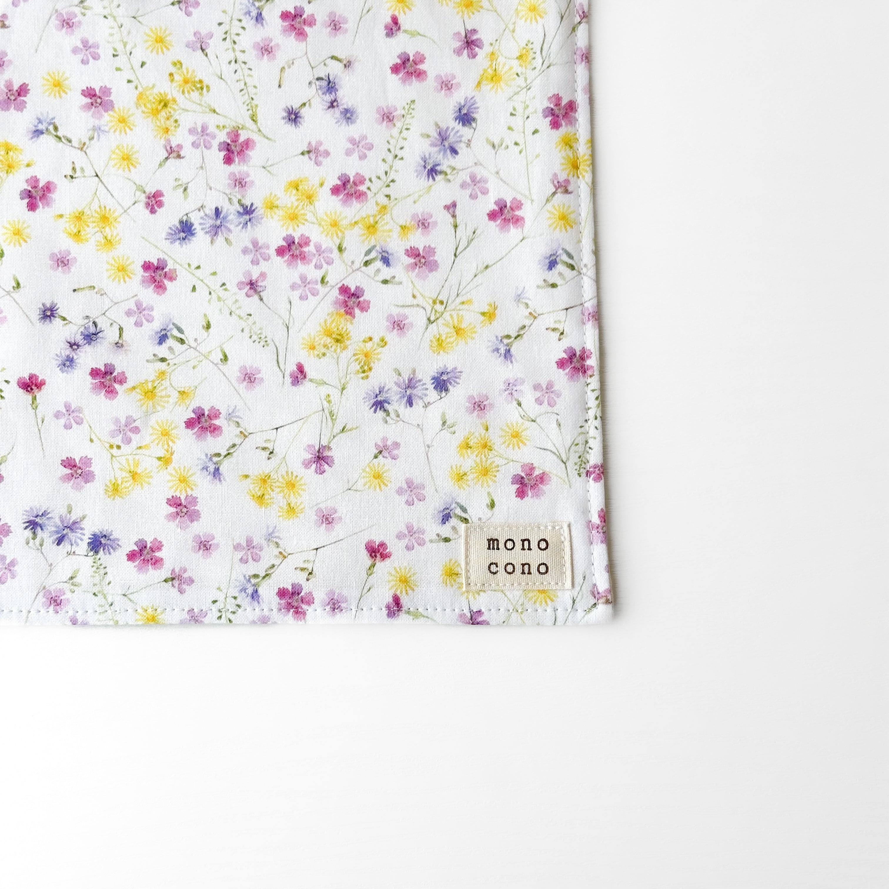 国産のコットン生地にオーガニックコットンのガーゼを重ねたガーゼハンカチ。