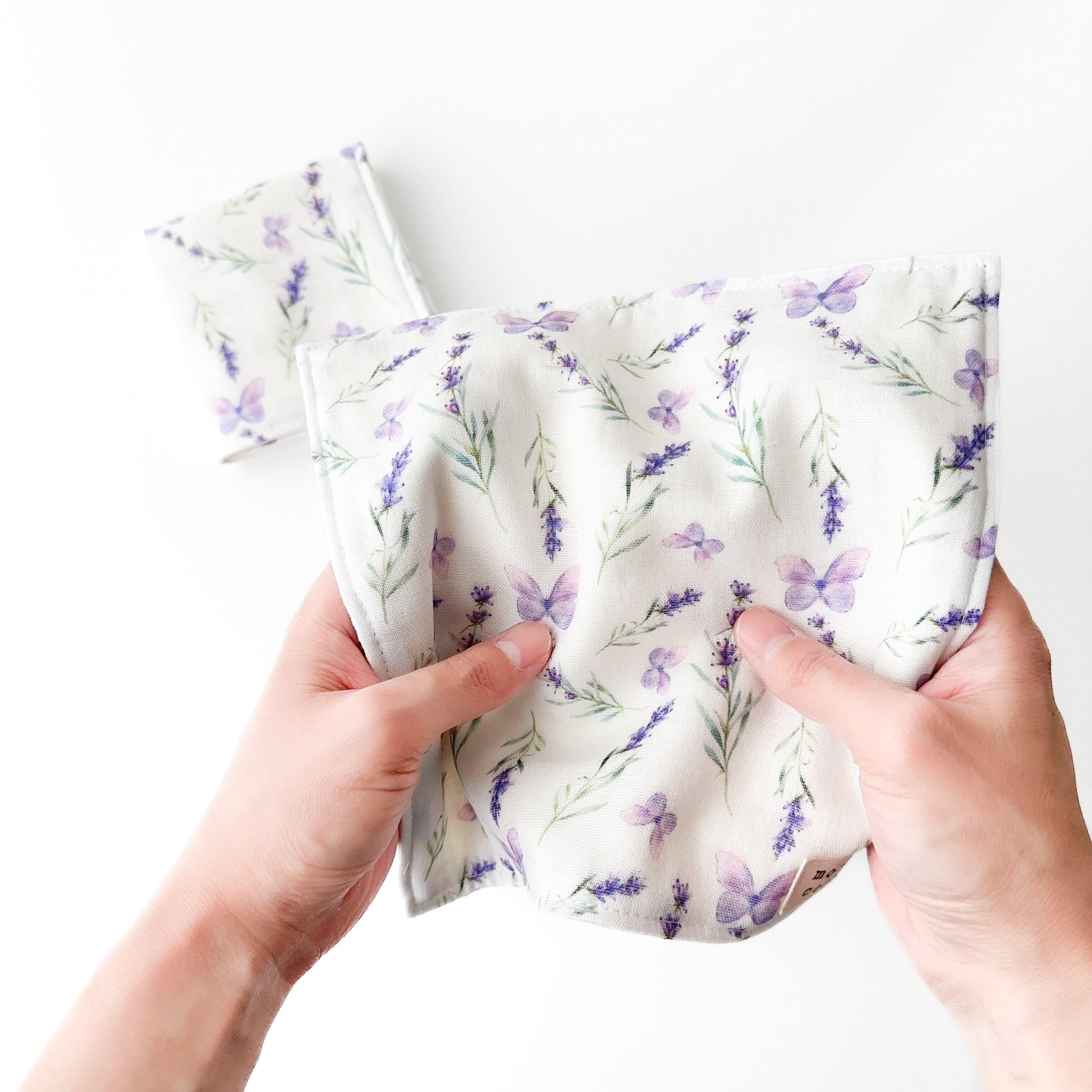 『 ラベンダー畑で 』名入れ・ループ可 国産ガーゼ+オーガニックコットン 6重ガーゼハンカチ