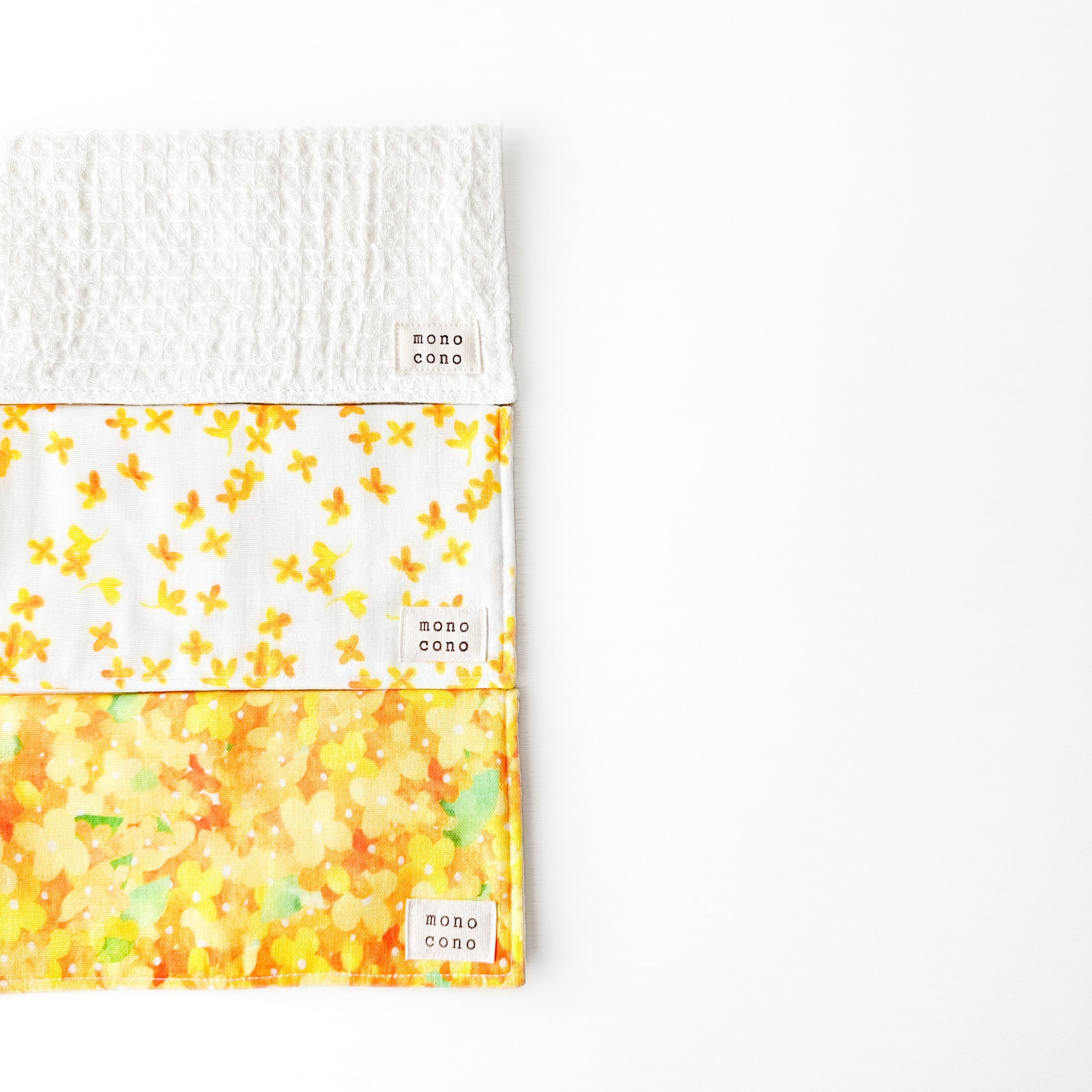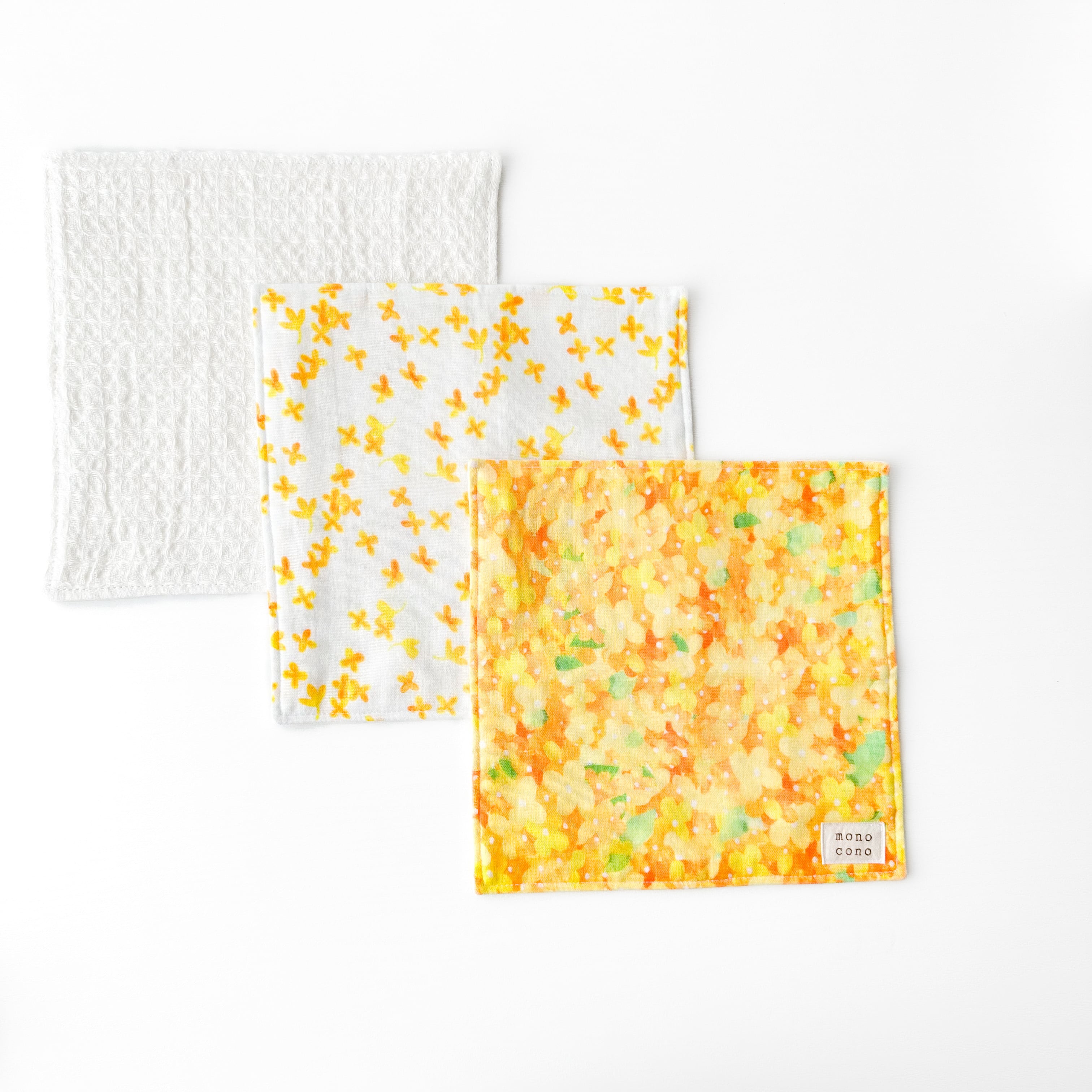『 金木犀の贈り物 』|名入れ・ループ可 |6重ガーゼ+リネンワッフルガーゼのハンカチ3枚セット|ギフト|