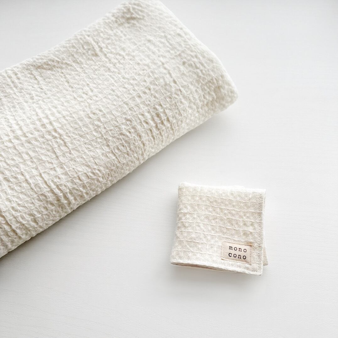 『 リネンとオーガニックコットンのワッフルガーゼ 』名入れ可|ベルギー産リネン100%|贈り物|ギフト