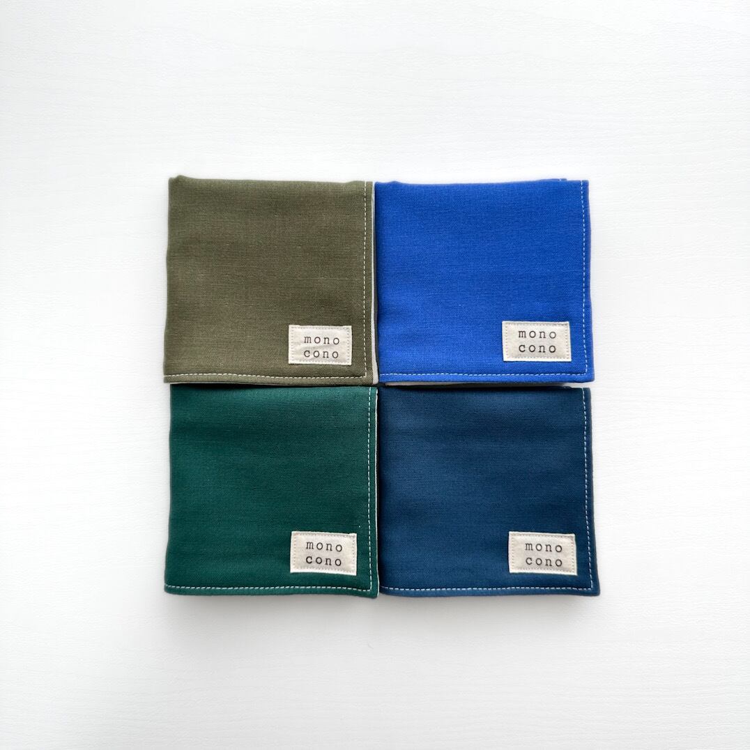 選べる『 大人ブルー&グリーン 』2枚セット|名入れ可|オーガニックコットン|ガーゼハンカチ|男性|メンズ