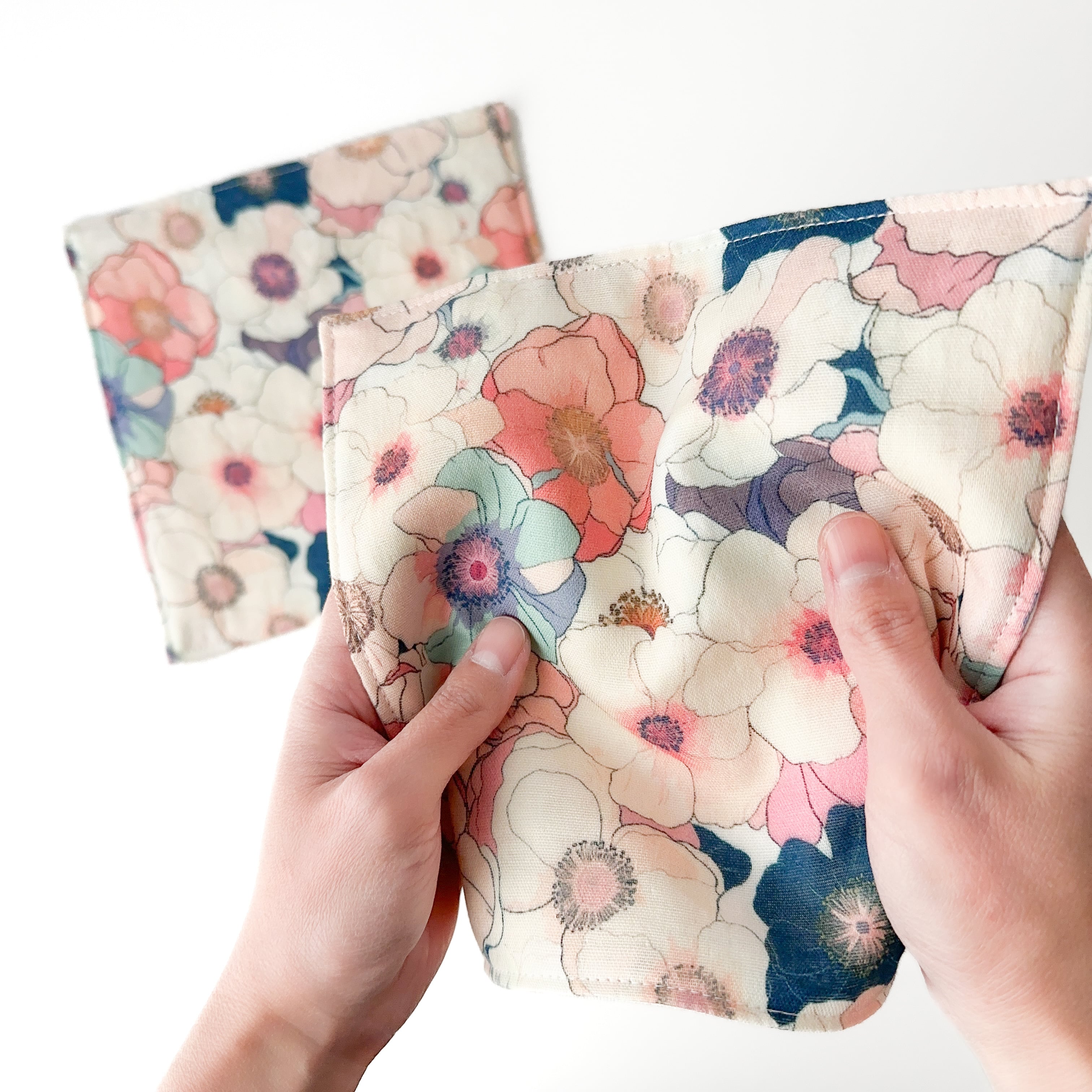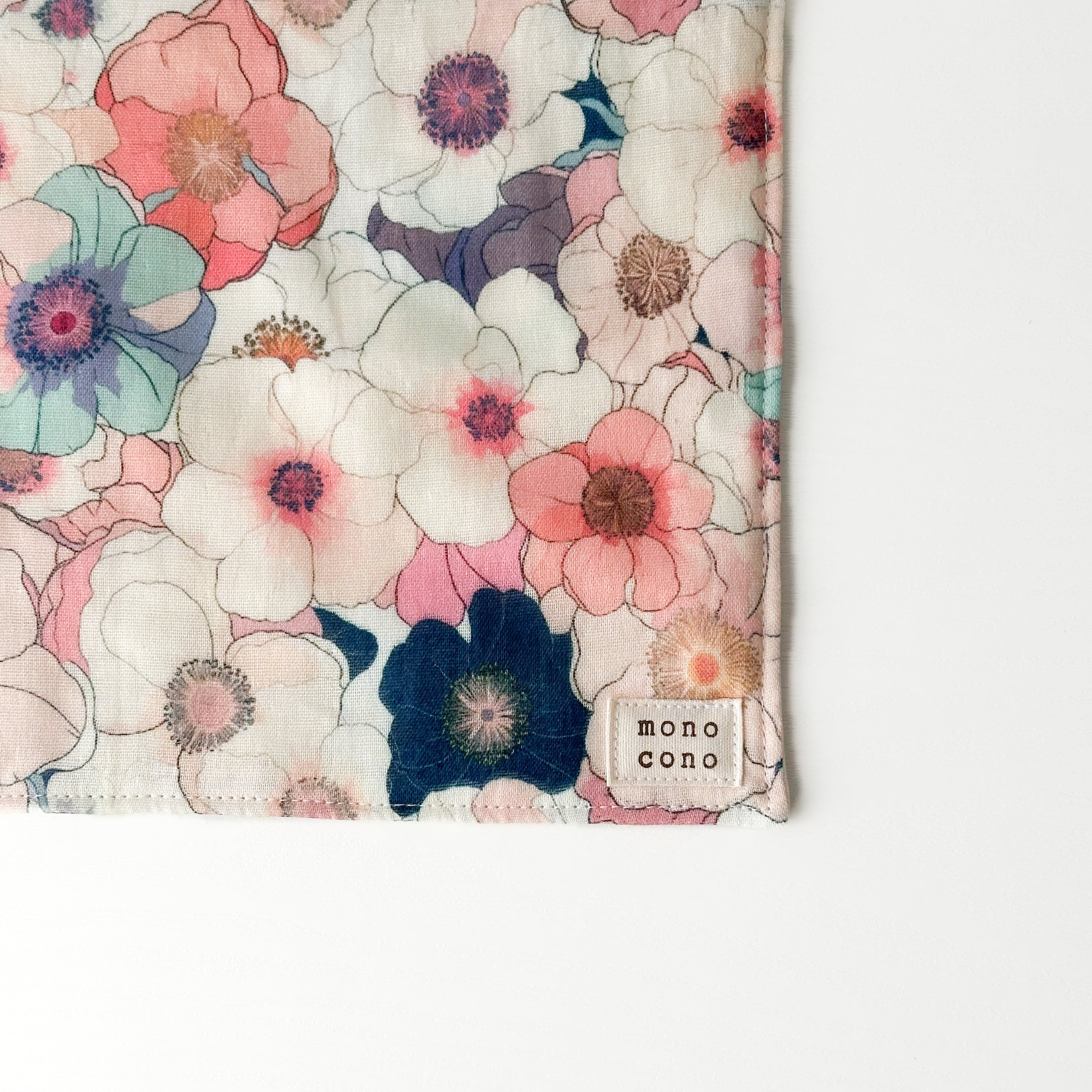 『 花こころ 』名入れ・ループ可|オーガニックコットン使用|ガーゼハンカチ|花|プチギフト|出産祝い|お祝い|送別|新調|贈り物|春|入園