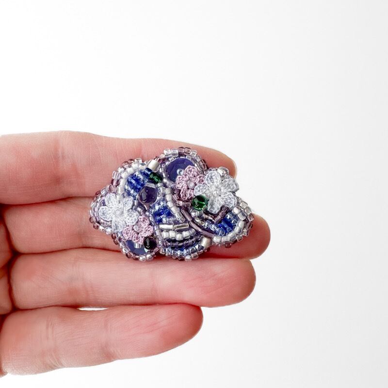 刺繍して仕立てた大人可愛いブローチ。