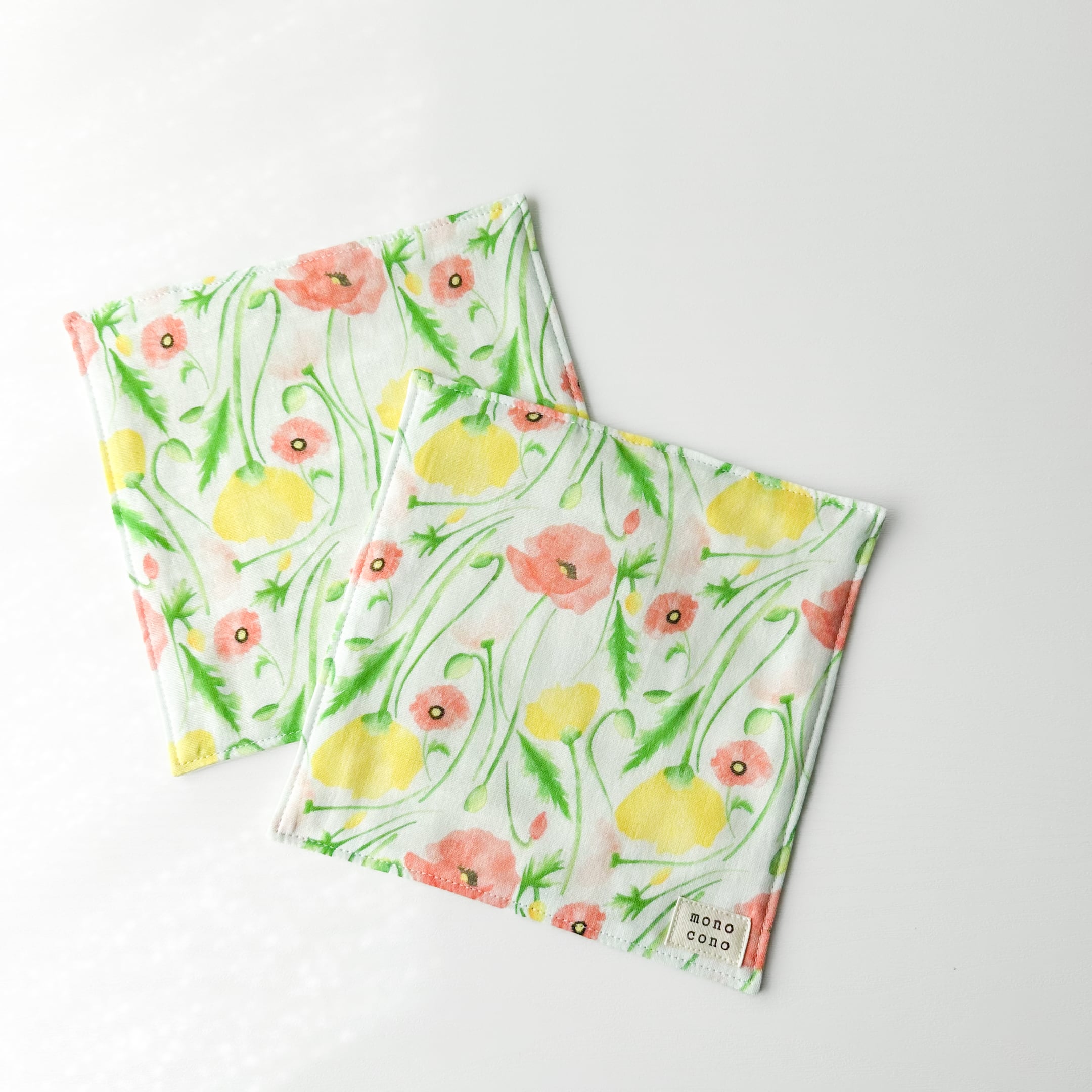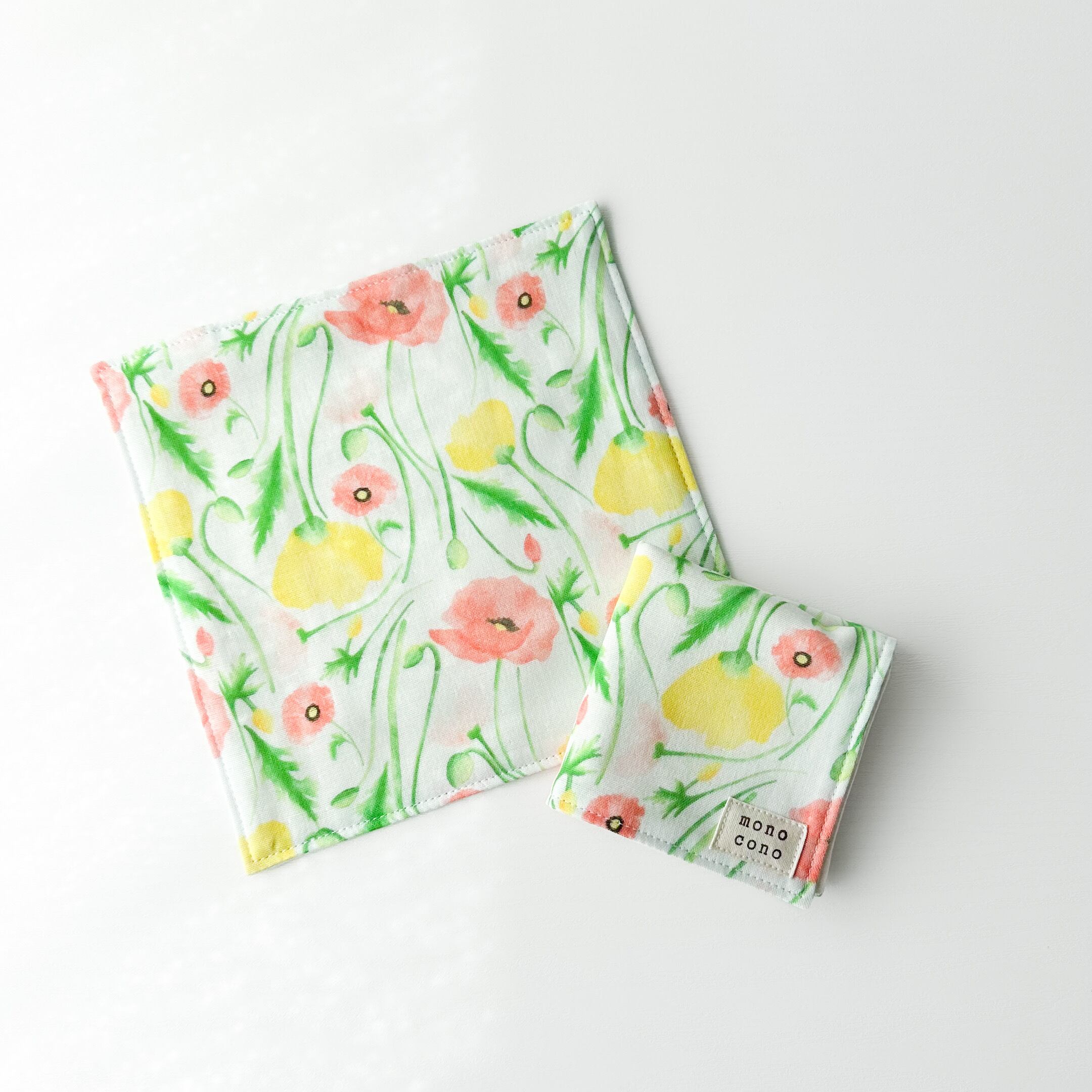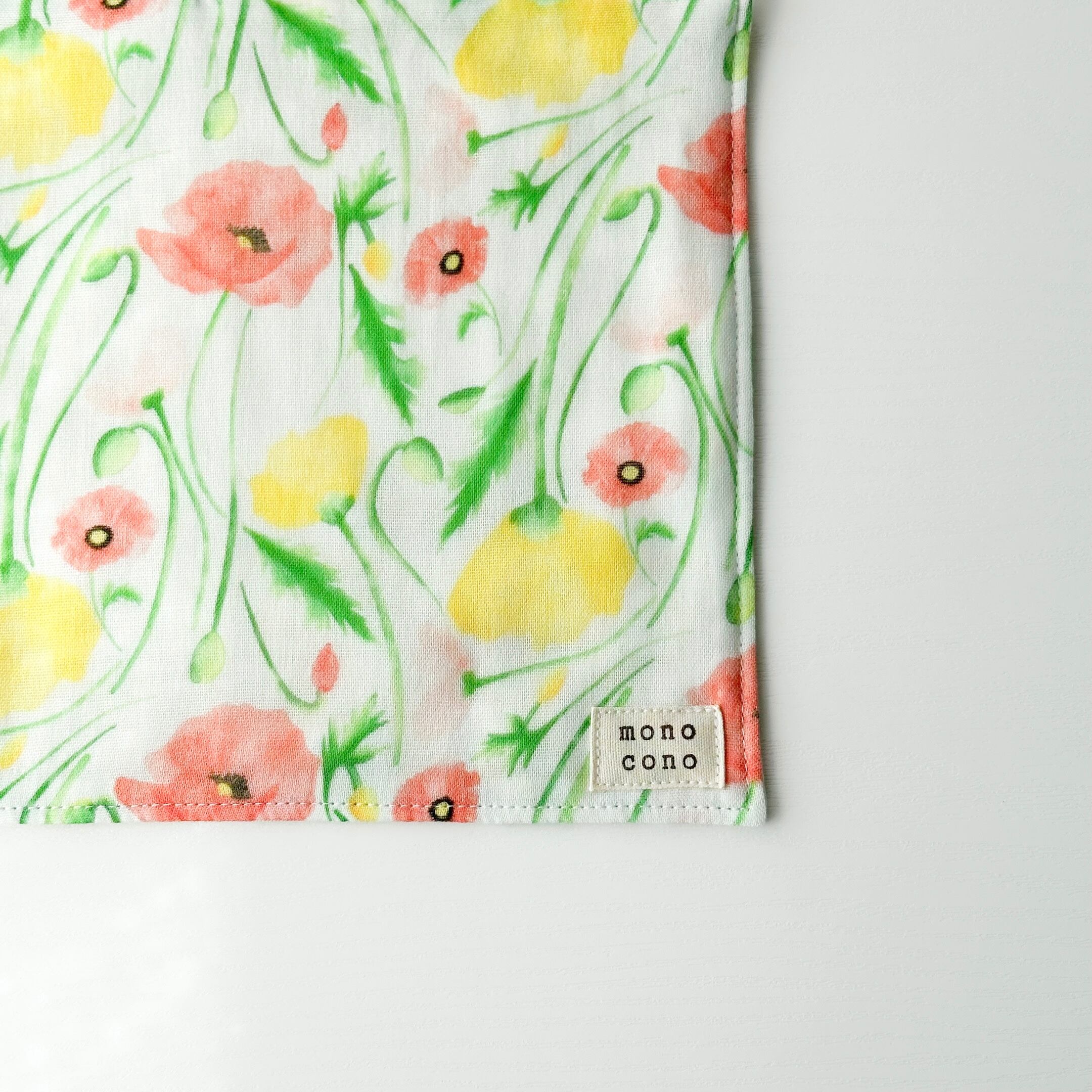 『 ポピーに囲まれて 』名入れ・ループ可|国産ガーゼ+オーガニックコットン|ガーゼハンカチ|プチギフト|贈り物|出産祝い
